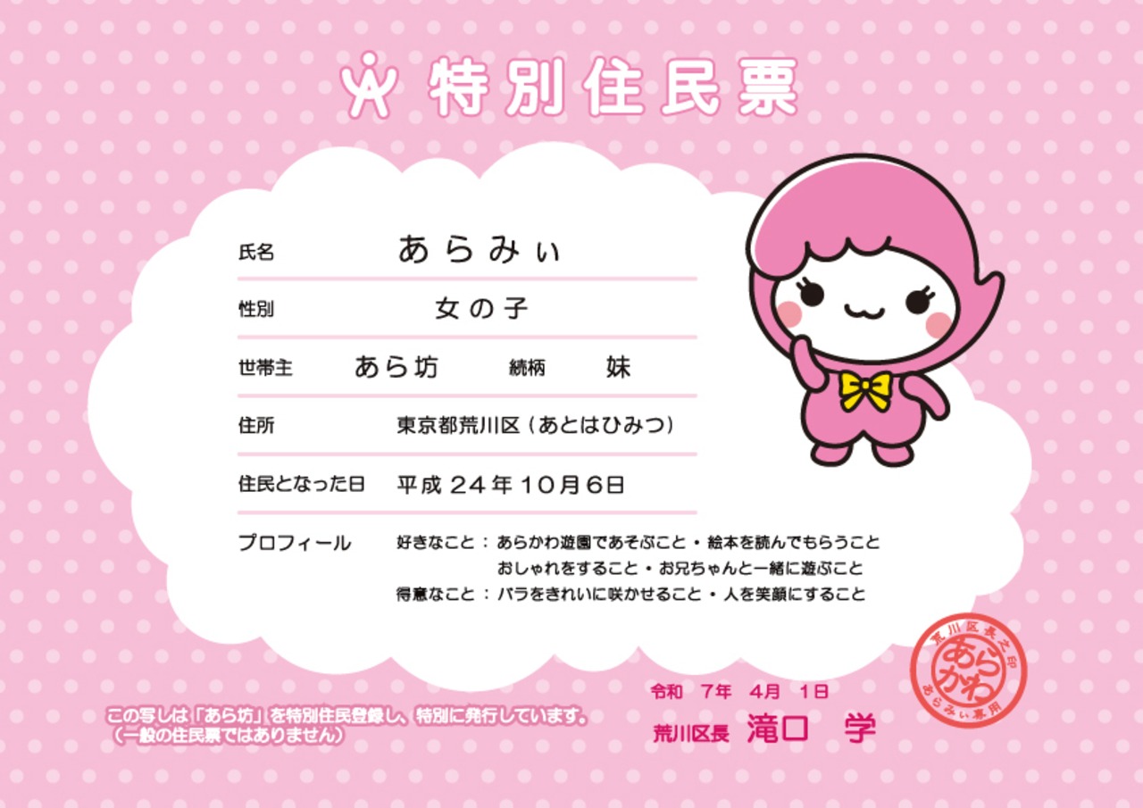 東京都荒川区の公式シンボルキャラクター「あらみぃ」のTシャツ。