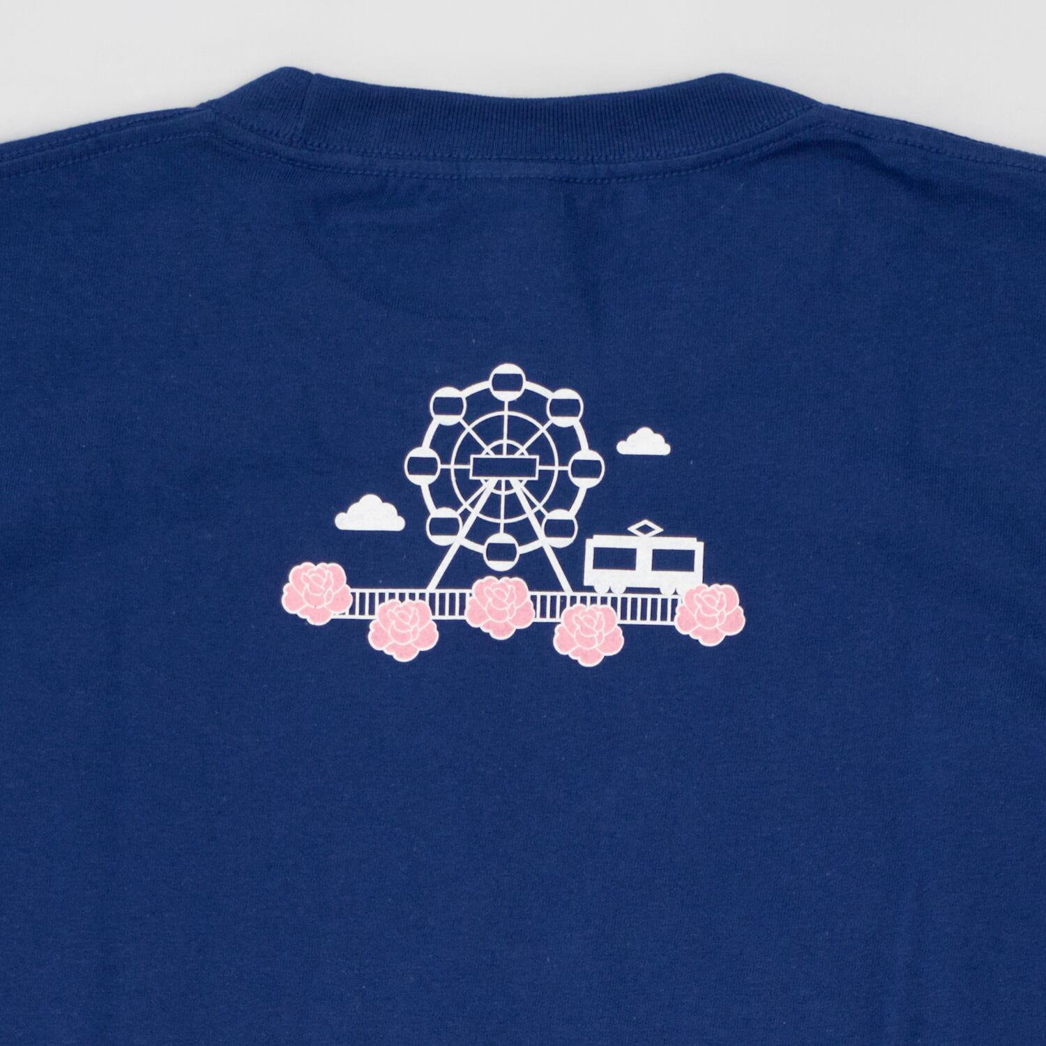 後ろの襟元には荒川区の人気スポット「あらかわ遊園」やバラの花、都電のイラストをさりげなくプリント。