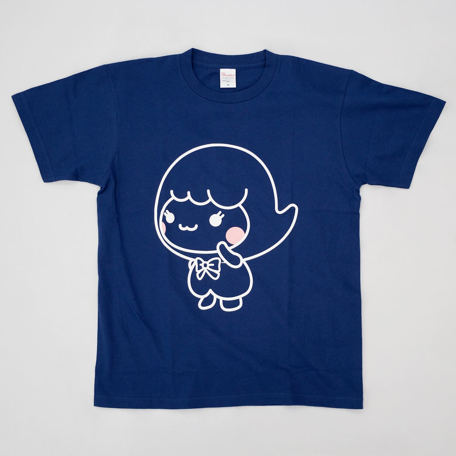 落ち着いたネイビーカラーのTシャツに、キャラクターが映えるシンプルで可愛らしい一枚です。