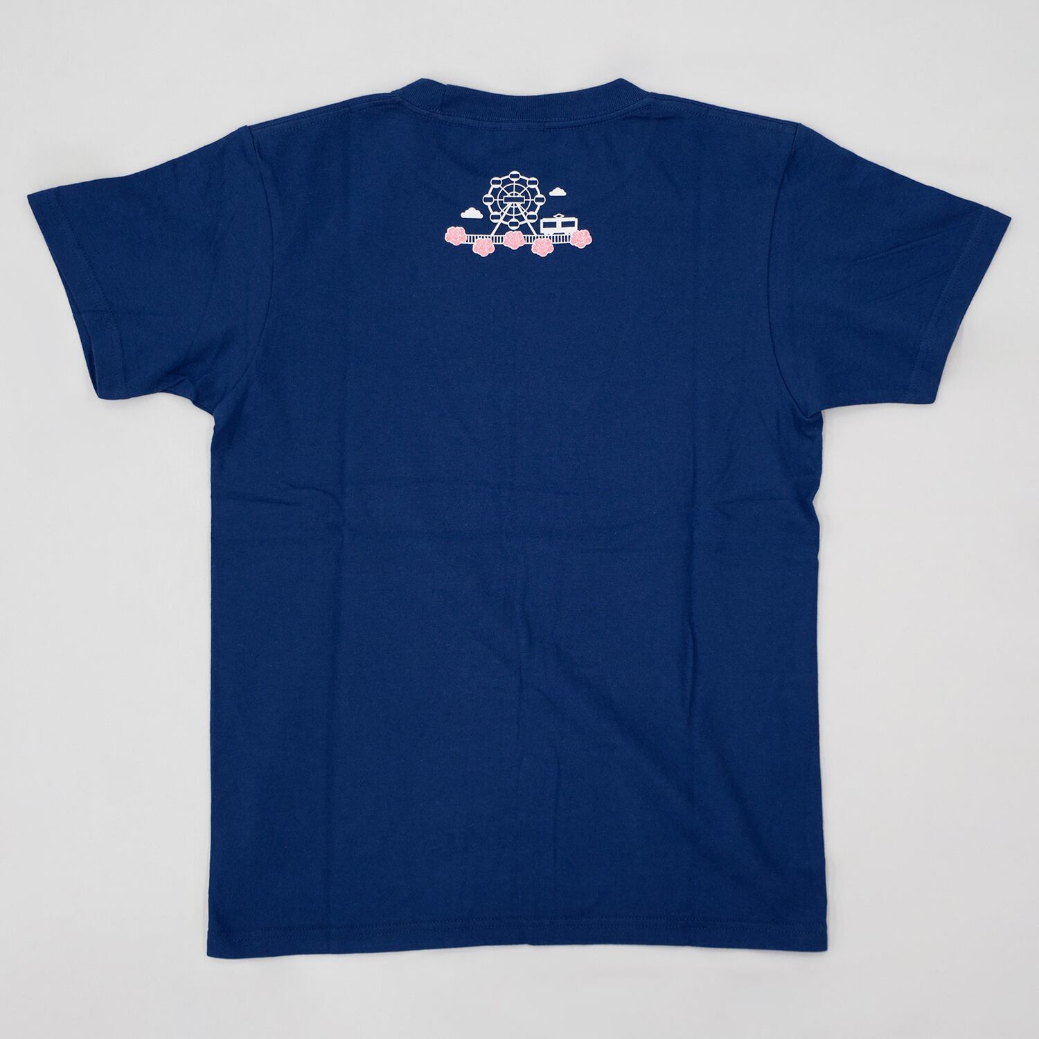 落ち着いたネイビーカラーのTシャツに、キャラクターが映えるシンプルで可愛らしい一枚です。